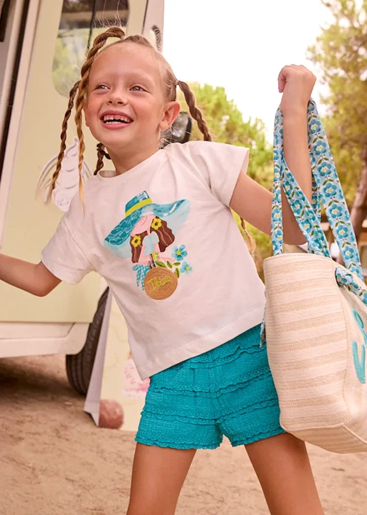 Completo shorts volant e maglietta stampata bambina